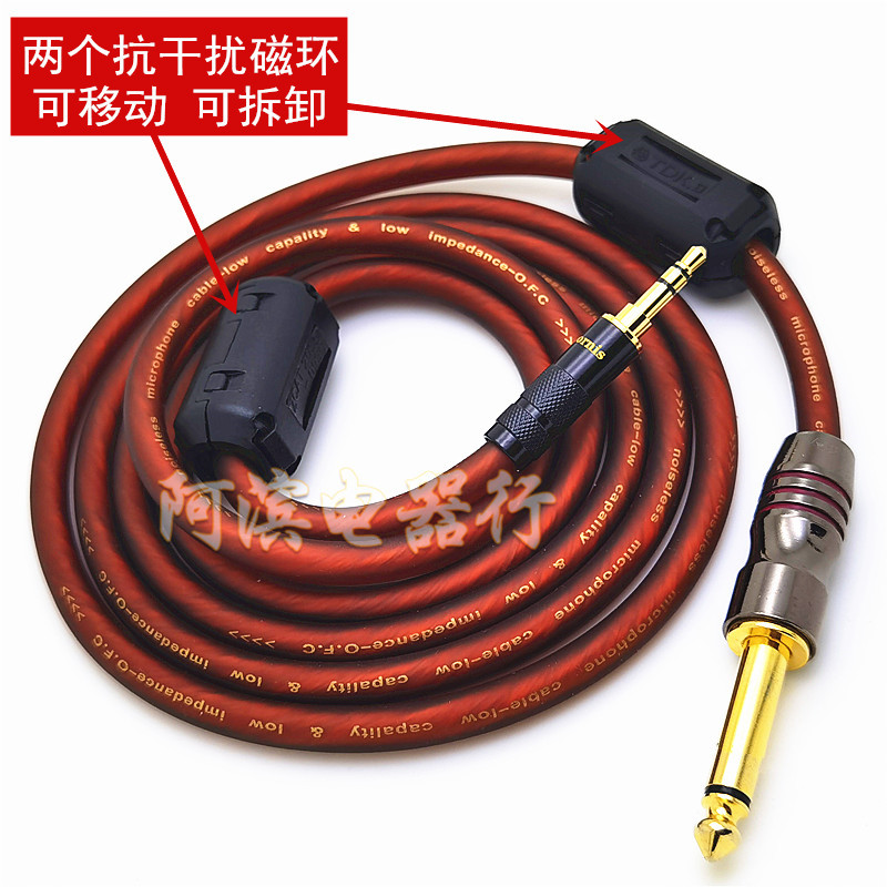 高屏蔽降噪音频连接线电吉他贝司3.5转6.5大转小6.35大二芯音响线
