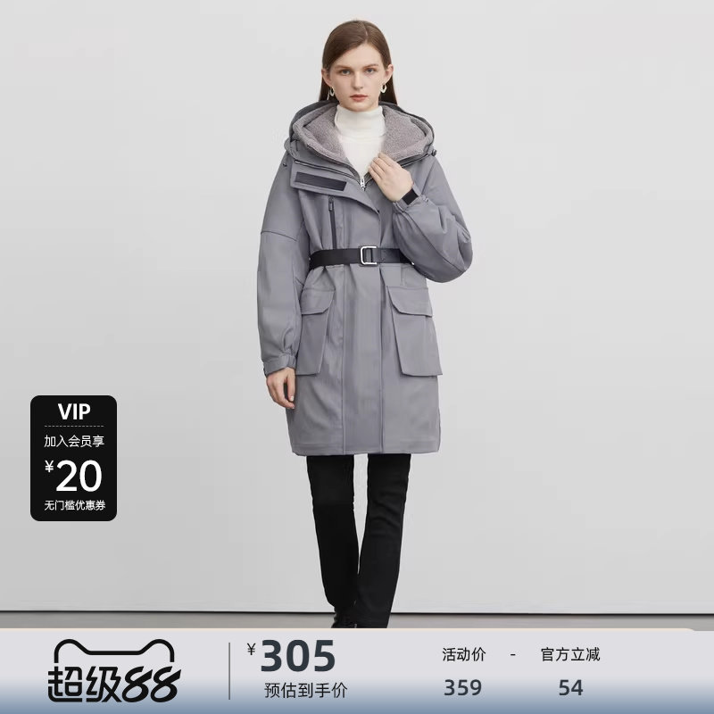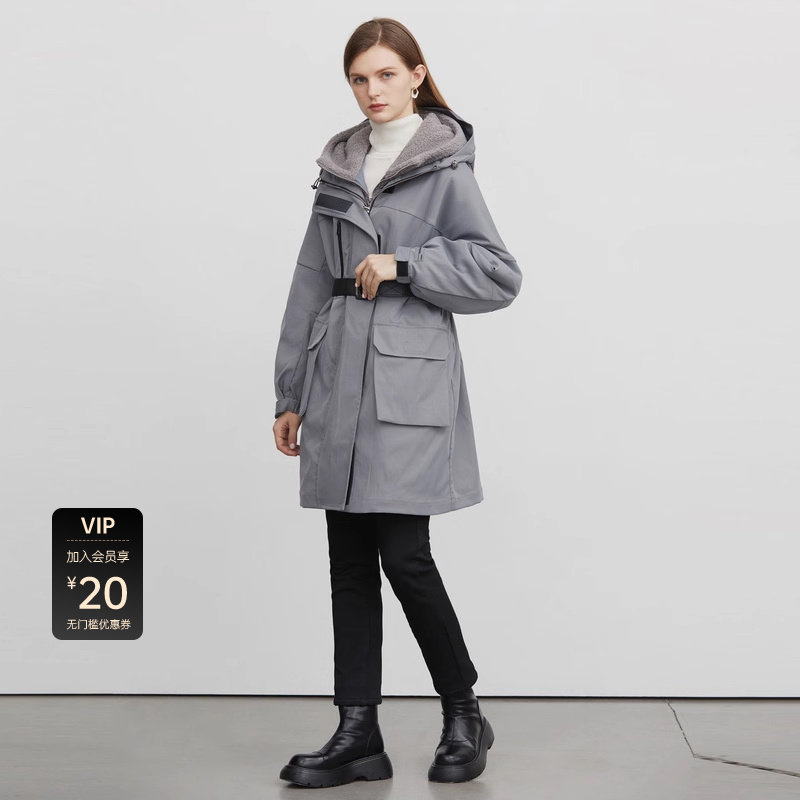 两件套风衣 连帽收腰 摇粒绒