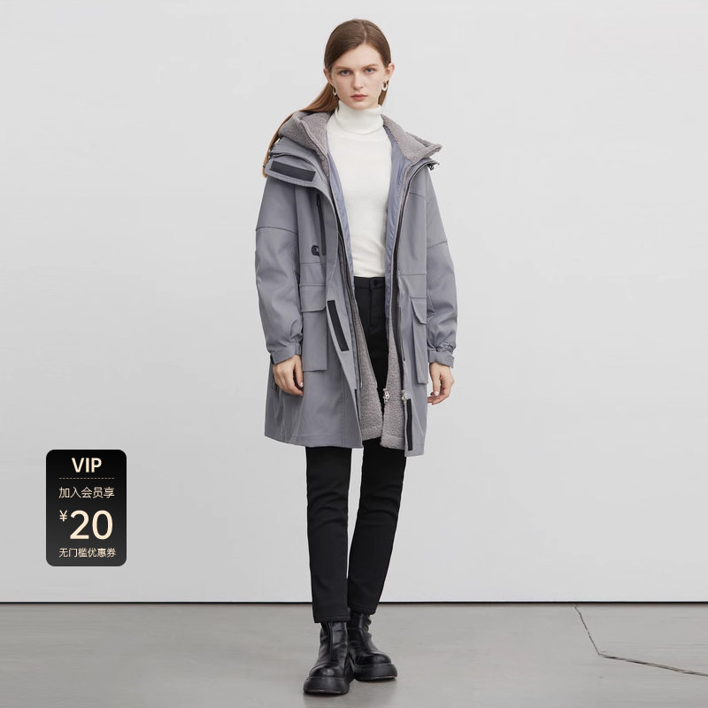 【反季清仓】sdeer圣迪奥收腰摇粒绒两件套长款风衣S22481805