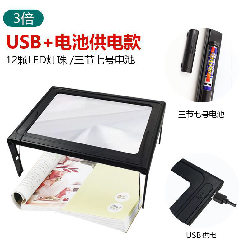 楚达 桌面/挂脖式多功能放大镜 12颗灯珠 3倍放大老人阅读1516