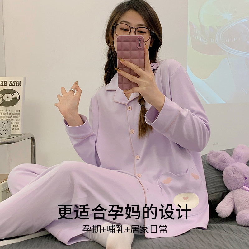 月子服纯棉春秋冬季产后12月份孕妇睡衣可外穿喂奶产妇哺乳家居服