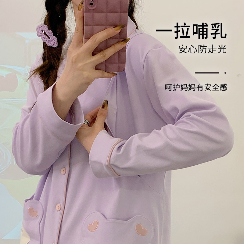 带胸垫奶香风纯棉月子服春秋季产后产妇孕妇睡衣秋冬款哺乳喂奶衣
