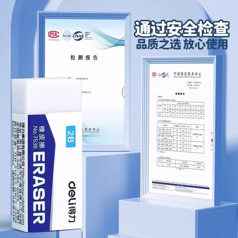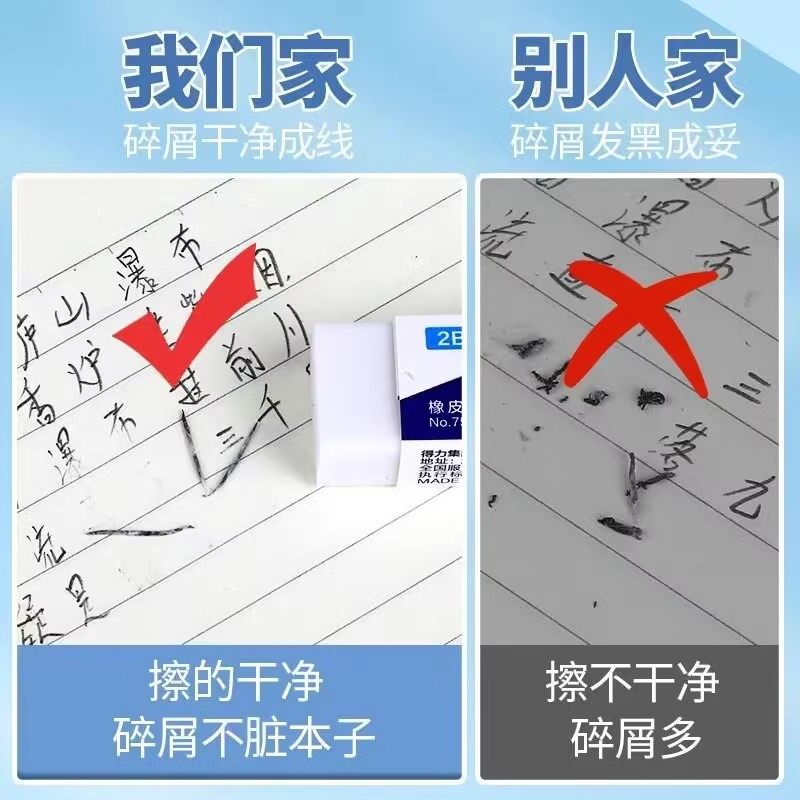 得力2B橡皮擦小学生专用干净少屑无痕擦字成线儿童考试铅笔橡皮