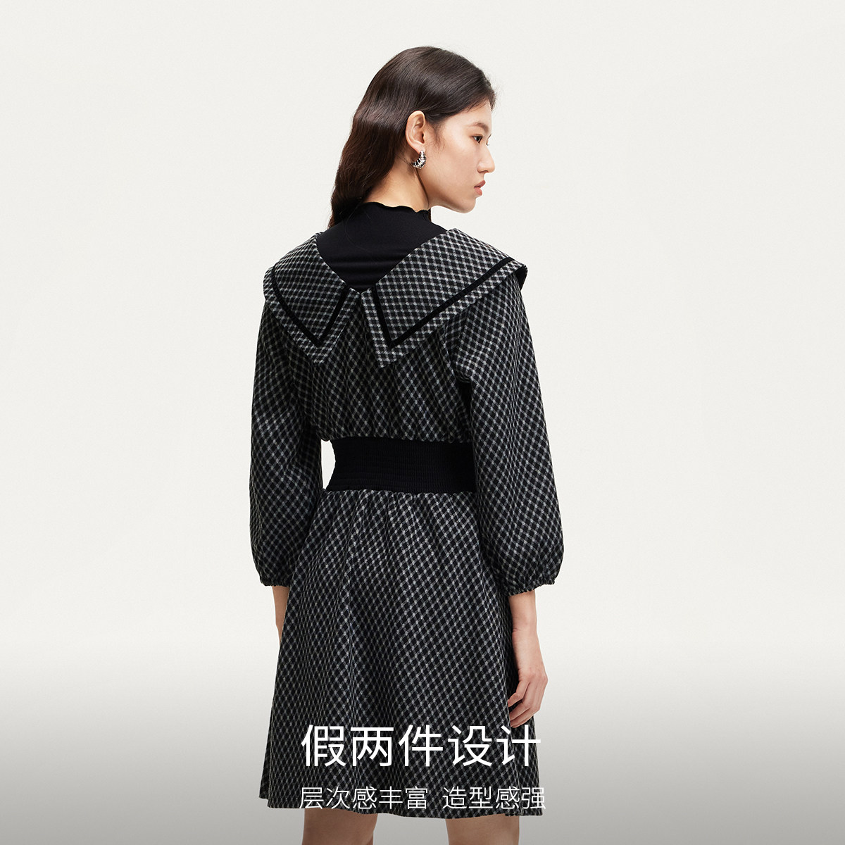 X裙型,收腰显瘦,不挑身材;肌理感格纹