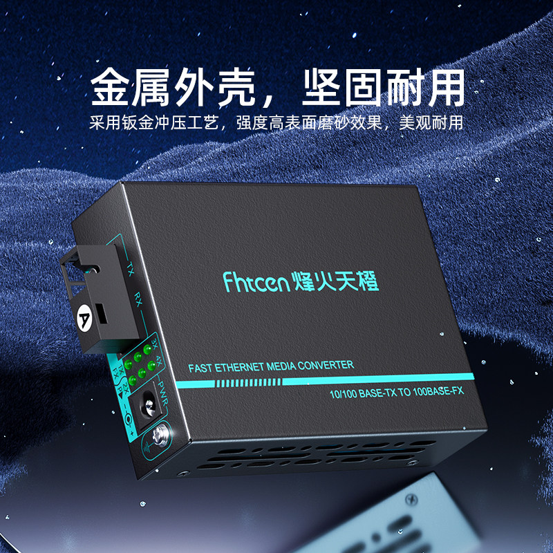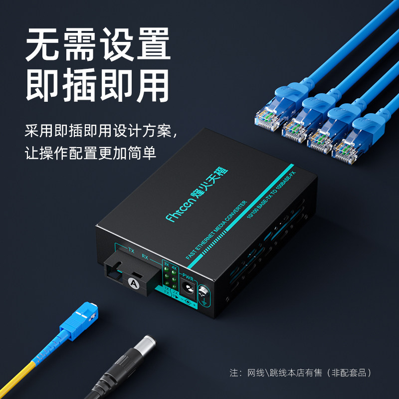 烽火天橙一光两电四电八电千兆光纤收发器一对SFP单模单纤SC百兆光电转换器光纤转网线一分二监控网络一拖四