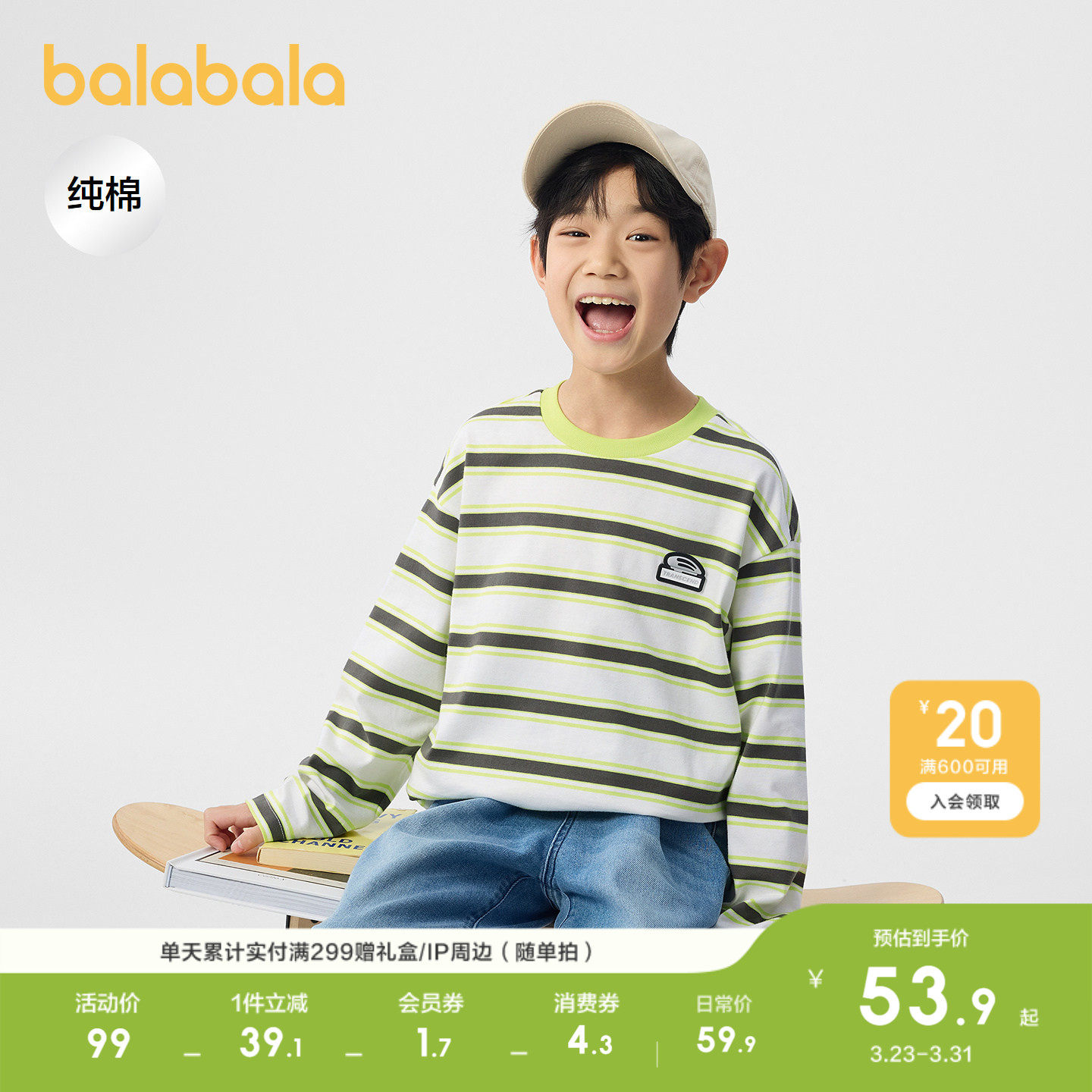 巴拉巴拉童装男童t恤儿童春装长袖上衣条纹针织内搭户外时尚百搭
