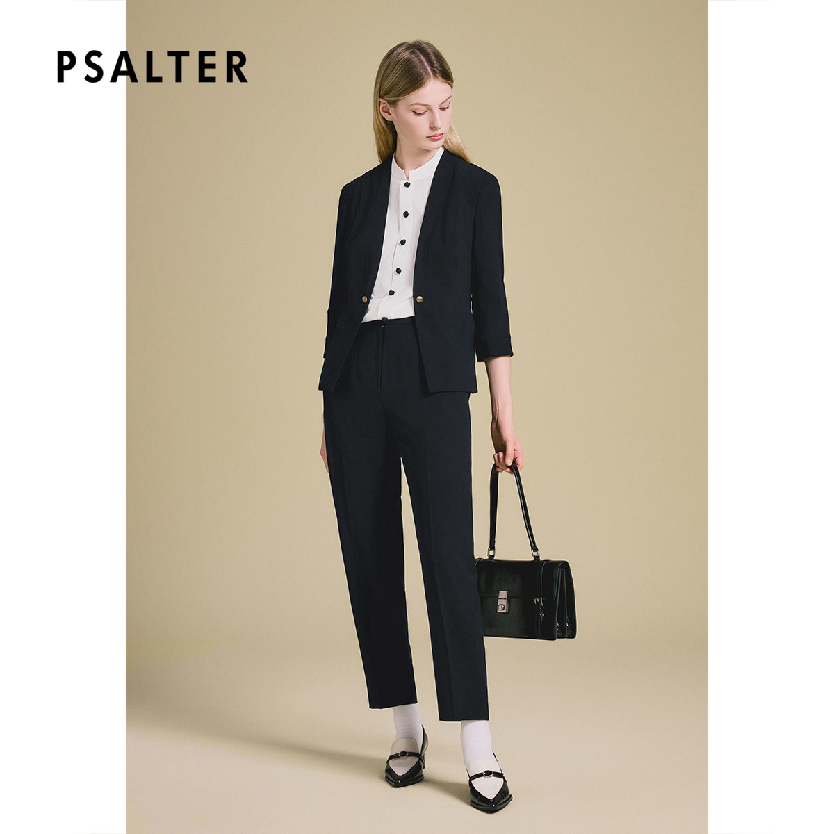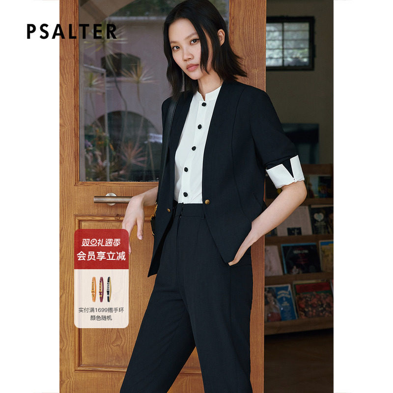 PSALTER诗篇v领箱型微收腰短款修身西装小外套2025夏季新款