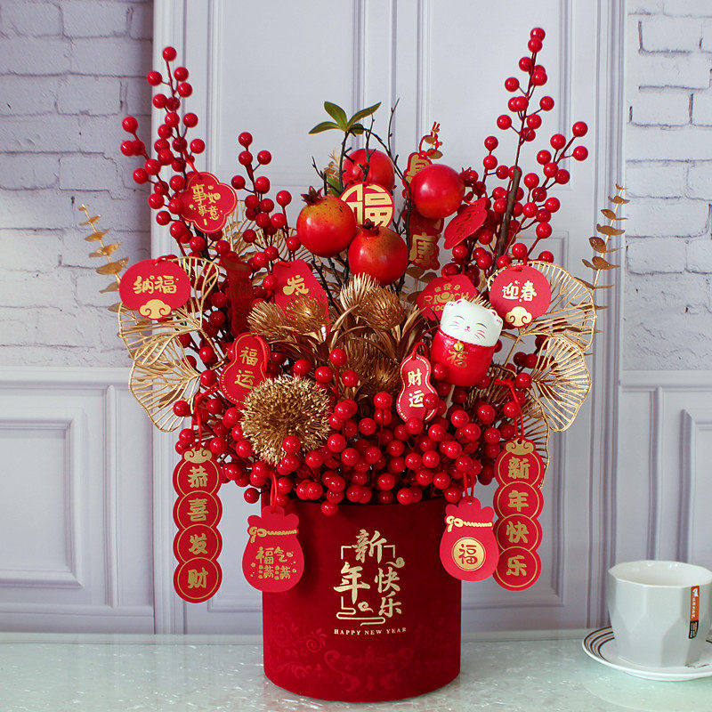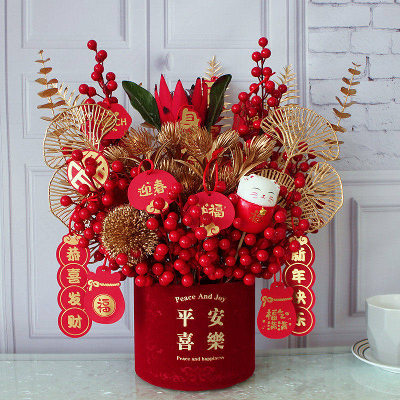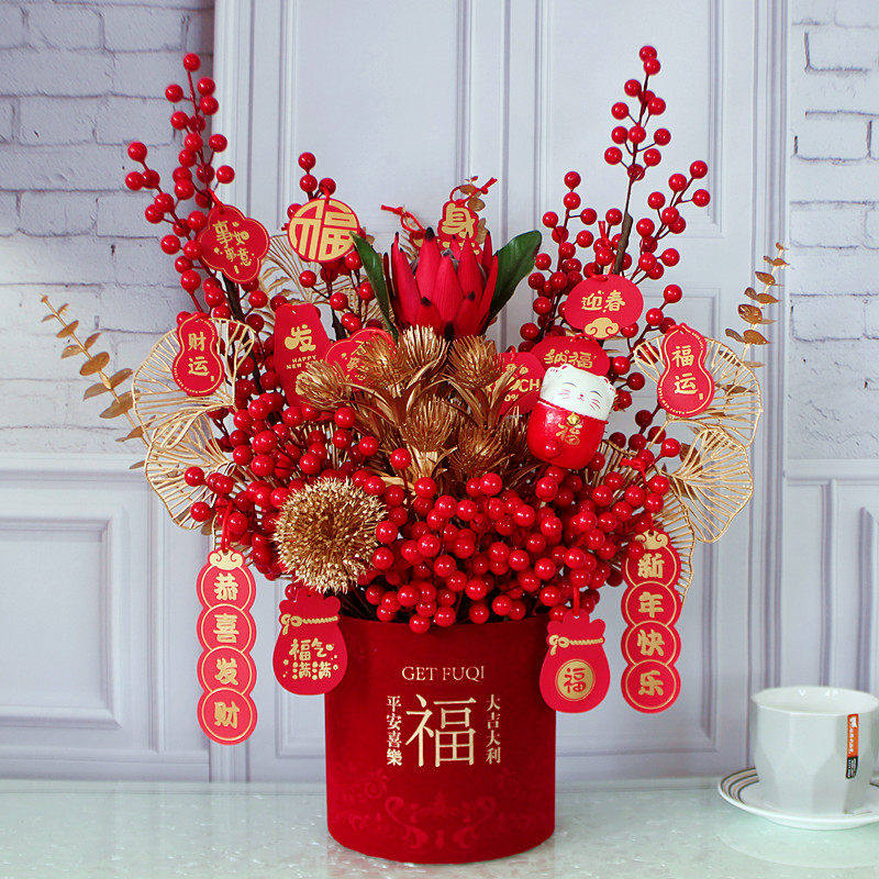 春节装饰布置摆件仿真花过年福桶年宵花新年送礼物氛围桌面年货