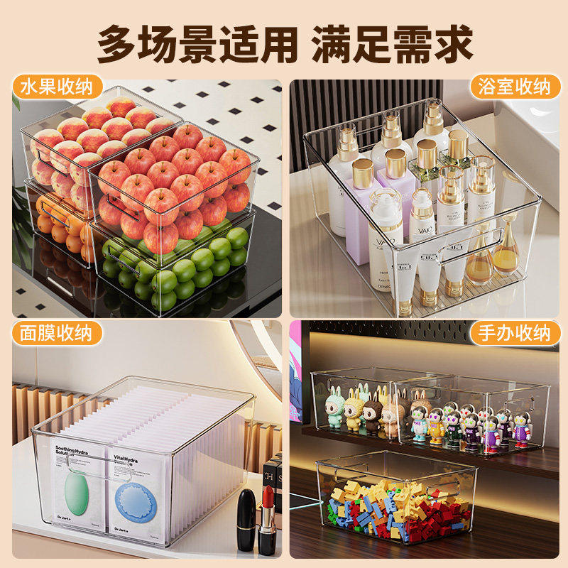 橱柜收纳盒家用整理杂物零食透明置物筐桌面亚克力长方形储物盒子