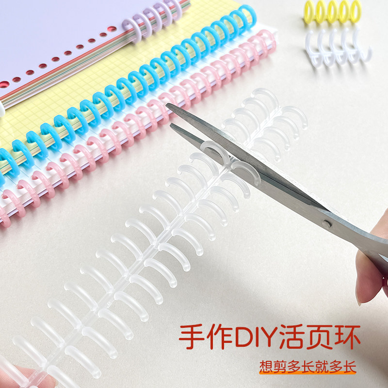 A4活页文件DIY装订环30孔马卡龙色活页夹塑料胶圈装订耗材扣环26孔A5B5手帐活页本装订线圈环可拆卸裁切夹条