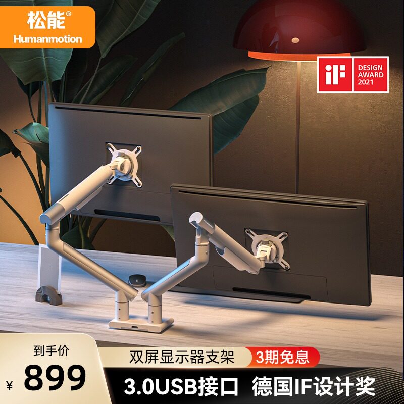 松能T7设计师款电脑显示器支架臂台式显示屏幕机械悬臂夹持免打孔