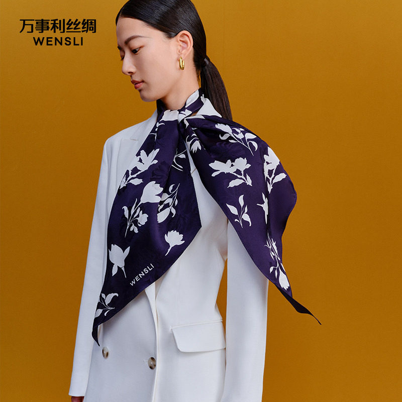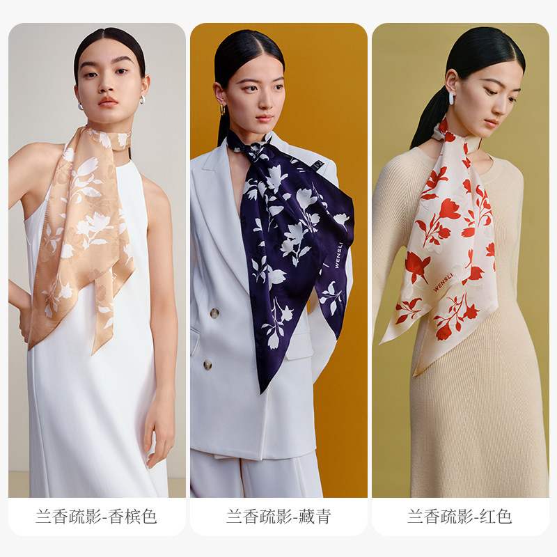 万事利年度新款桑蚕丝真丝丝巾丝带女领巾大斜巾 兰香疏影