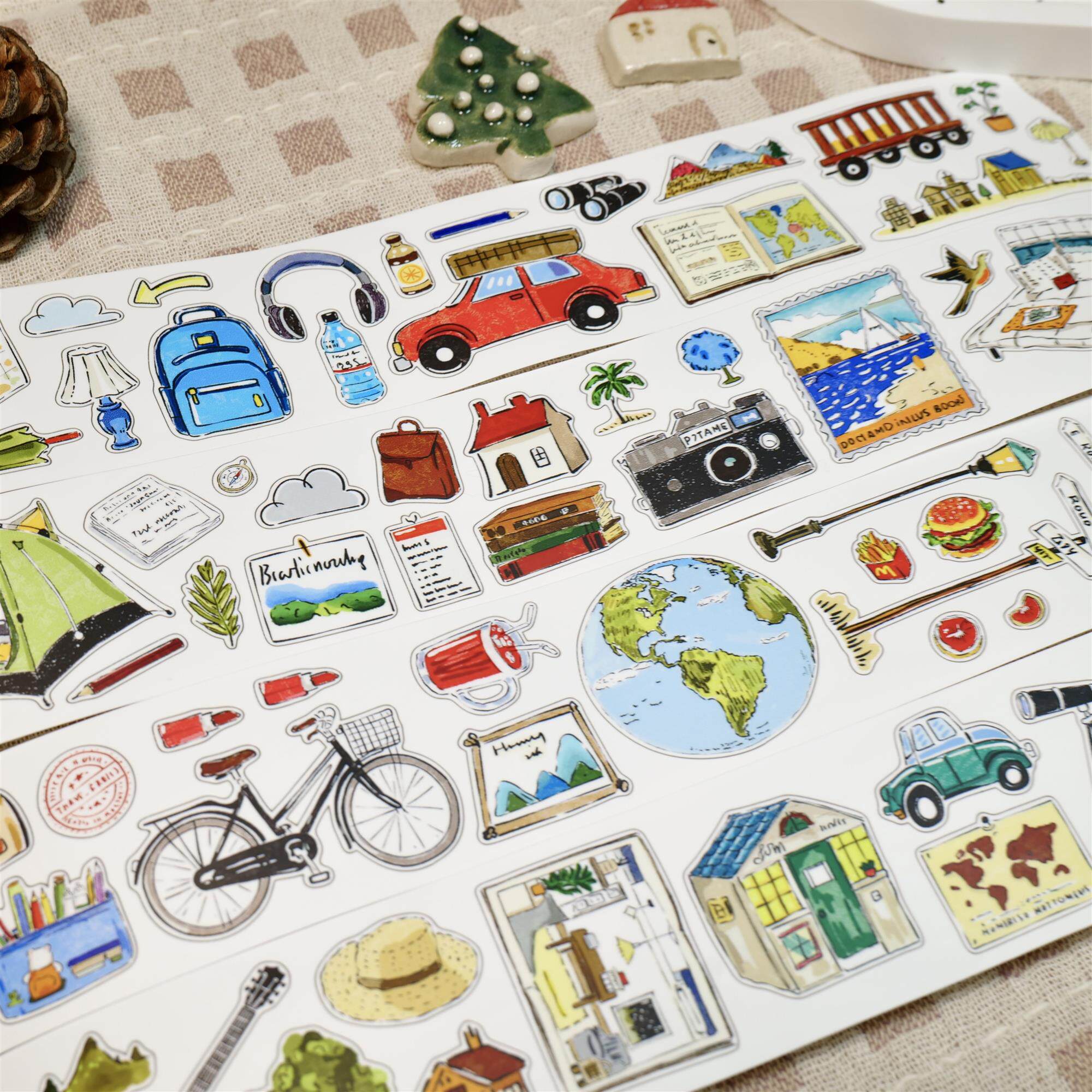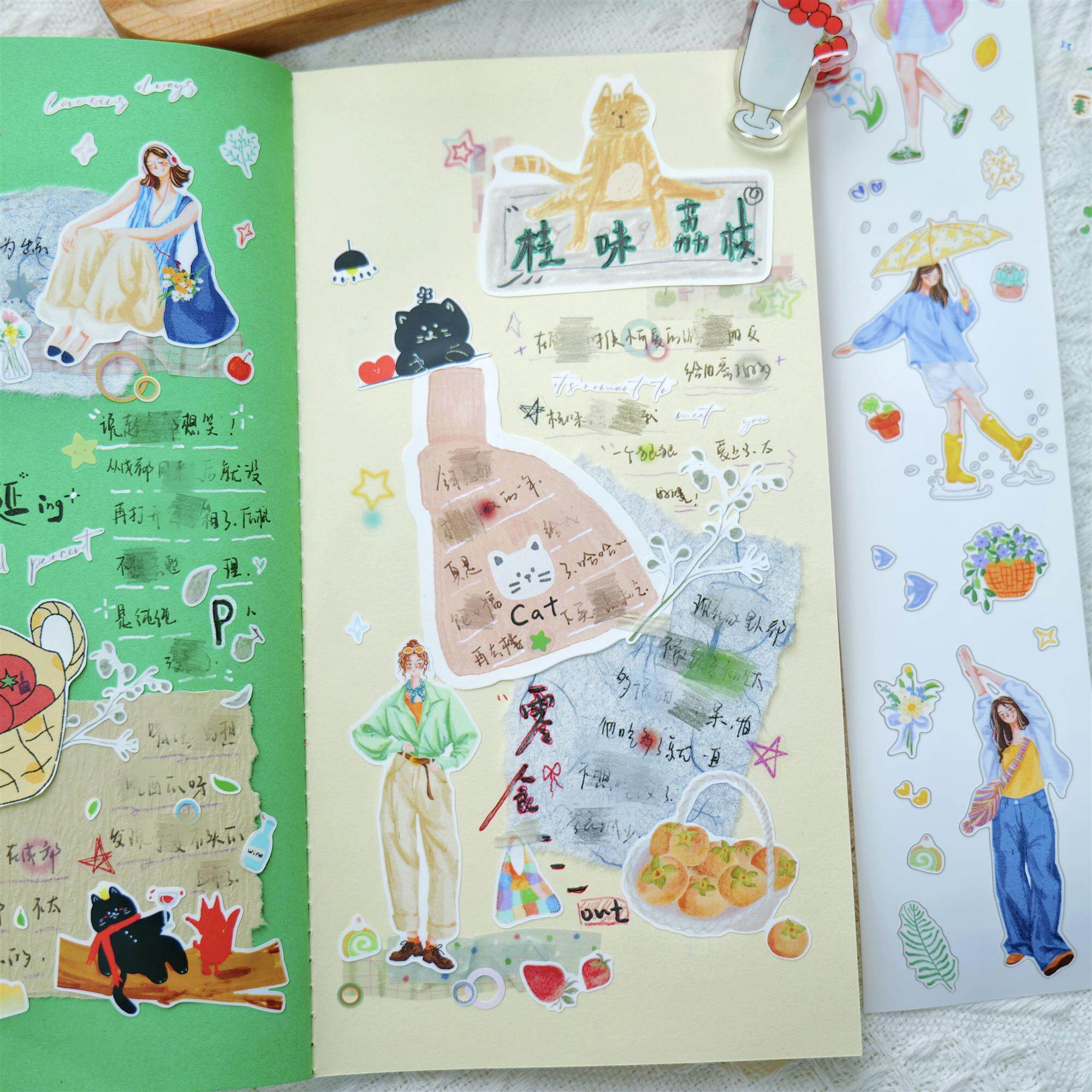 社团整卷-波粒商店模切胶带糖果美食旅行人物盐系轻复古手帐贴纸