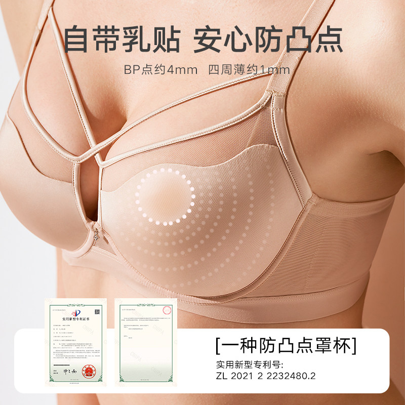 润微一拉薄大胸显小内衣女薄款无痕前扣拉链提拉防下垂收副乳文胸