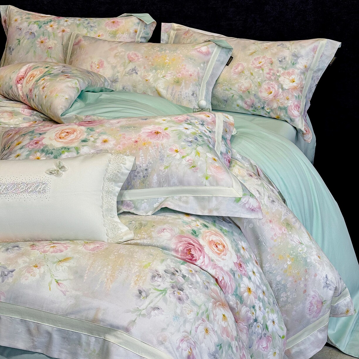 A类双层纱床上四件套纯棉全棉新款田园床单件被套被罩宿舍三件套4