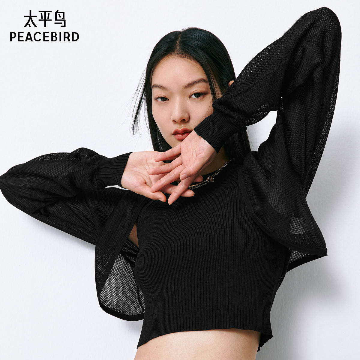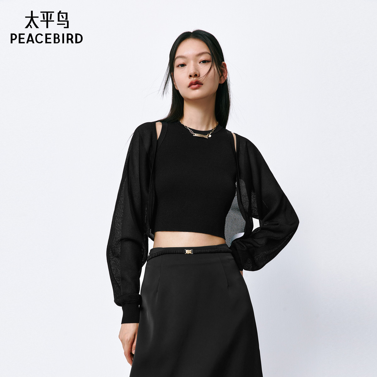 太平鸟贝壳式醋酸针织开衫女夏装空调衫气质披肩式线开衫