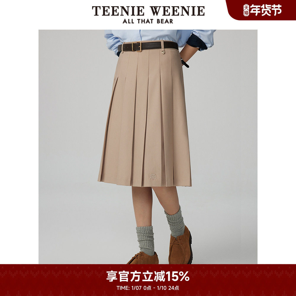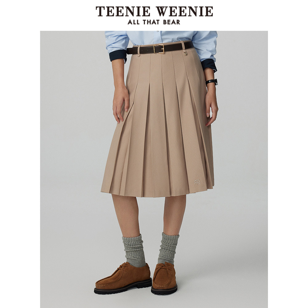 TeenieWeenie小熊奥莱冬装气质中长百褶裙优雅裙高智感裙子女