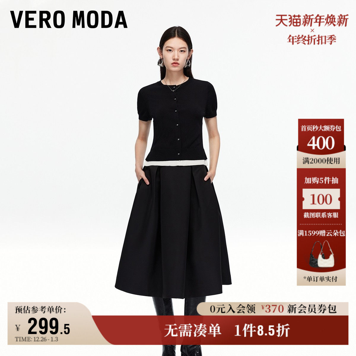 Vero Moda奥莱半身裙女2025秋冬新款百褶简约A字伞裙休闲百搭裙子