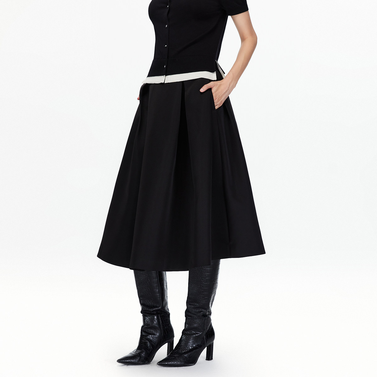 她池松紧腰百褶裙2025秋装新款女装时尚简约中长款A字高腰半身裙