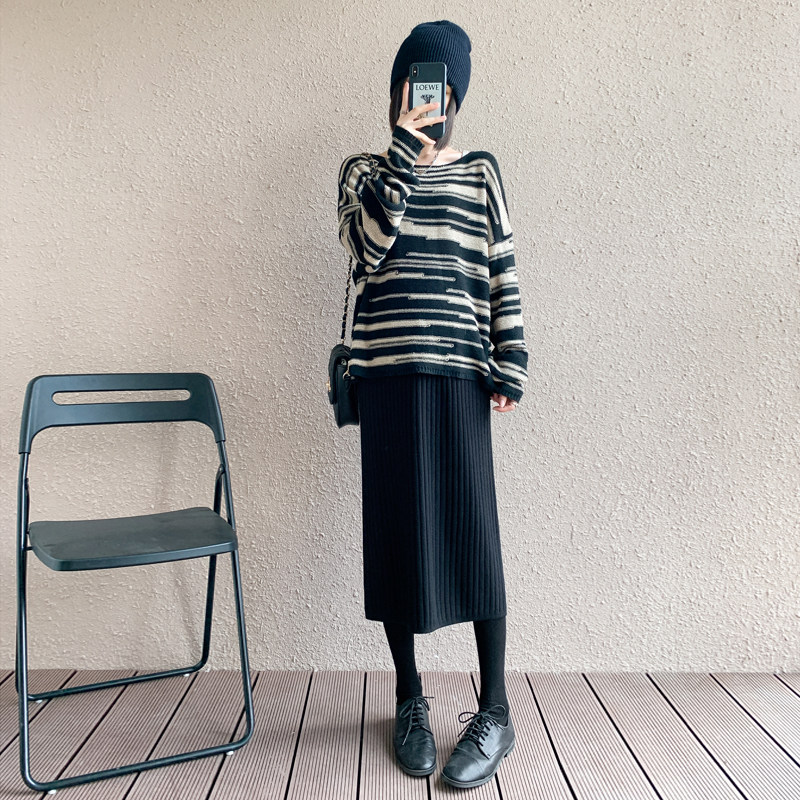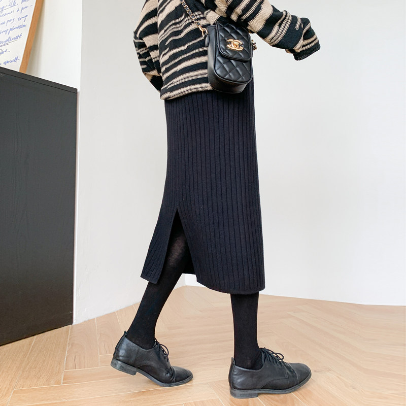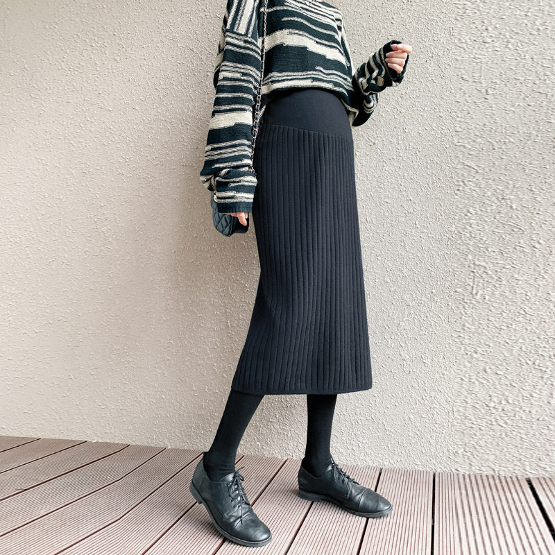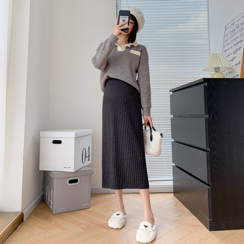 孕妇半身裙秋冬外穿高腰可调节托腹裙子中长款开叉包臀直筒针织裙
