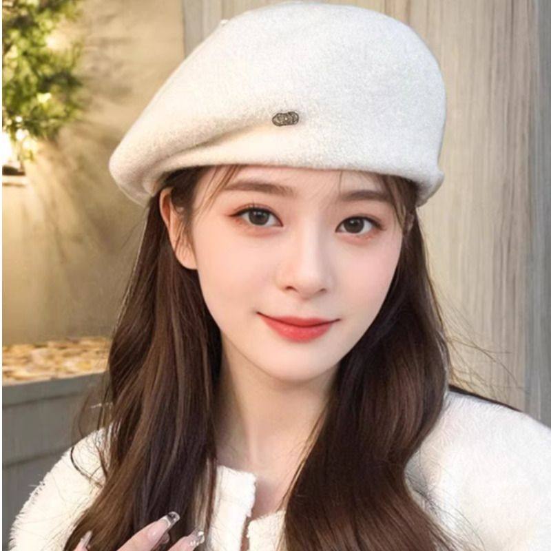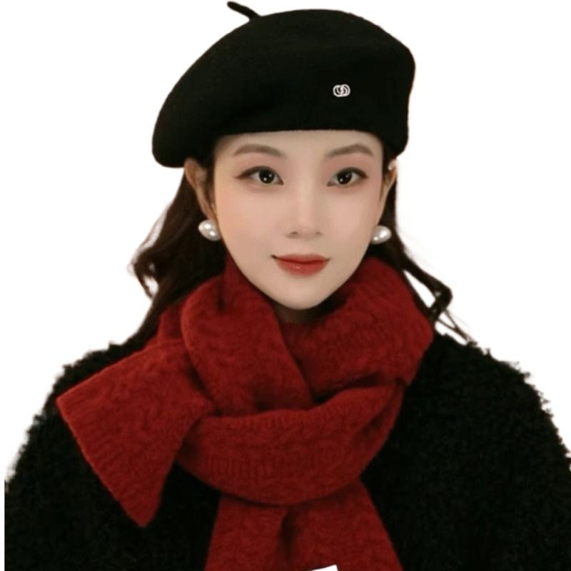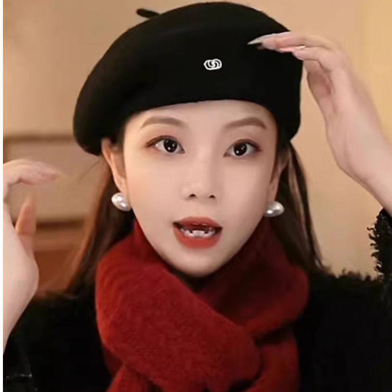 毛呢定型贝雷帽子女2025新款秋冬保暖时尚画家帽蓓蕾帽红色针织