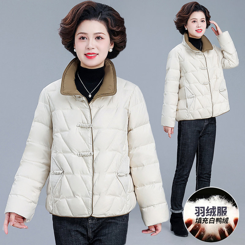 户外中年妈妈冬装国风羽绒服加厚2025新款洋气中老年女装时尚短款
