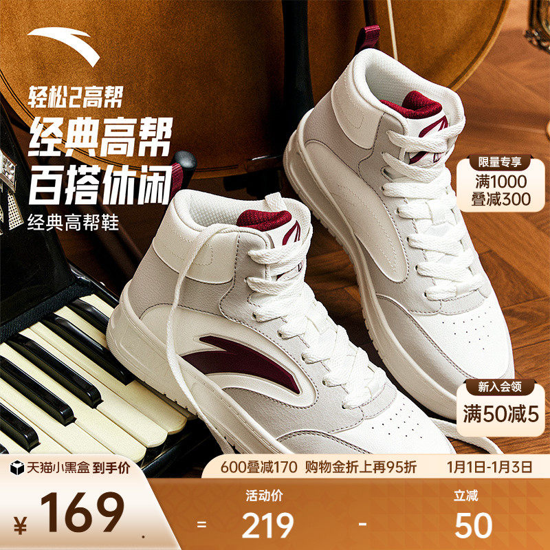 安踏轻松丨高帮板鞋女厚底增高舒适运动鞋潮流高帮鞋女百搭滑板鞋