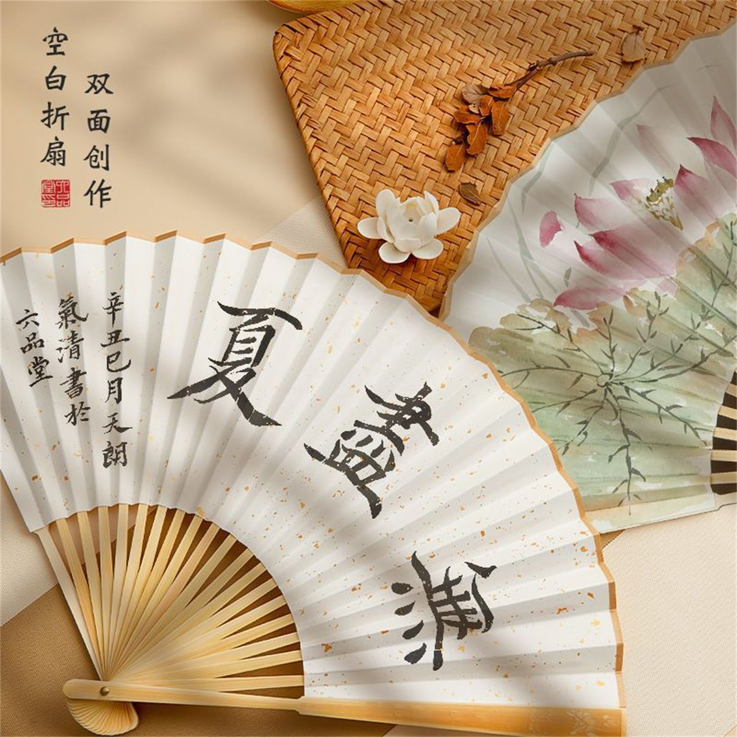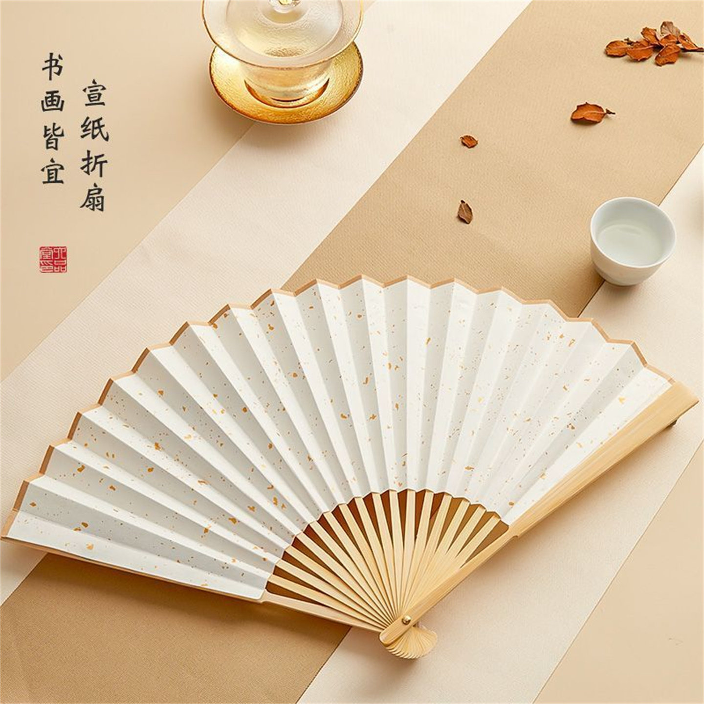 古风折扇中国风宣纸扇子空白夏季书法题字绘画扇洒金扇面diy画扇