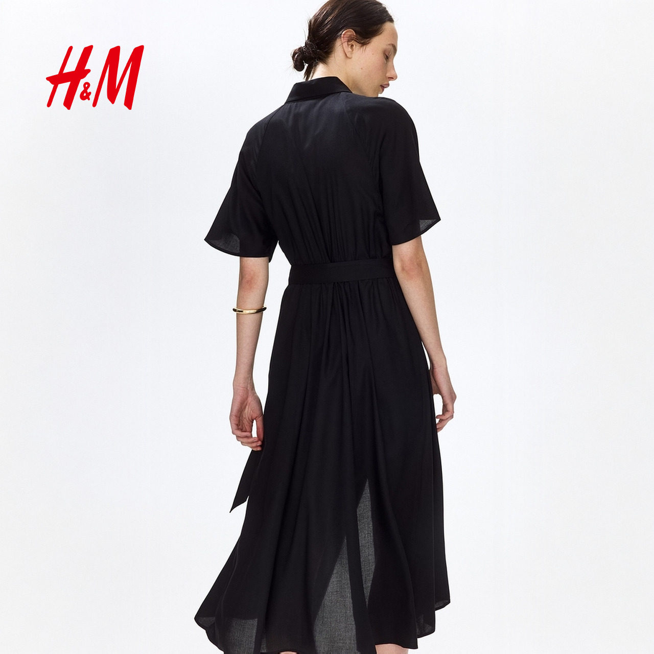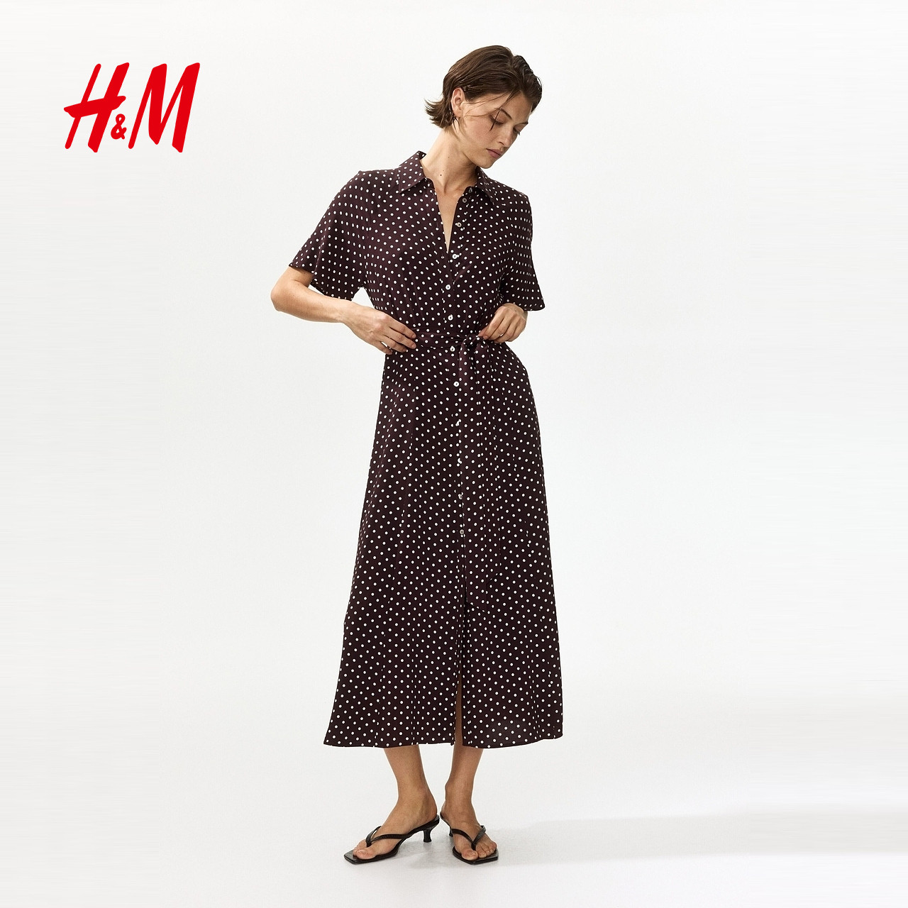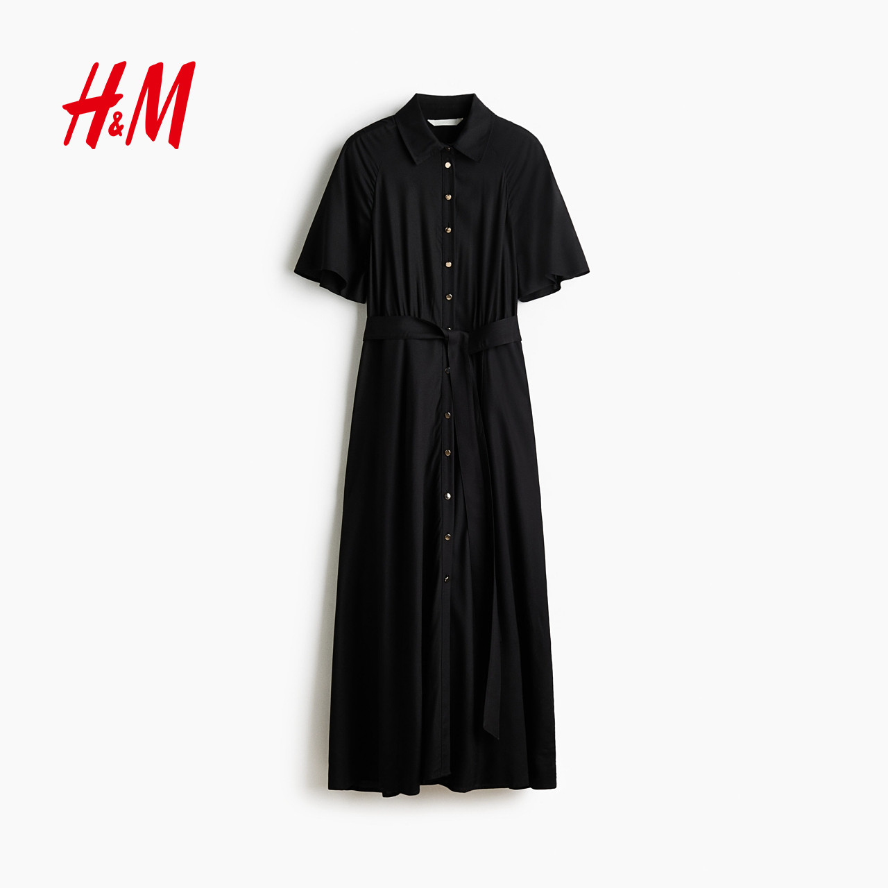 HM女装连衣裙2026春季新款时尚通勤衬衫式束腰衬衫连衣裙1217576