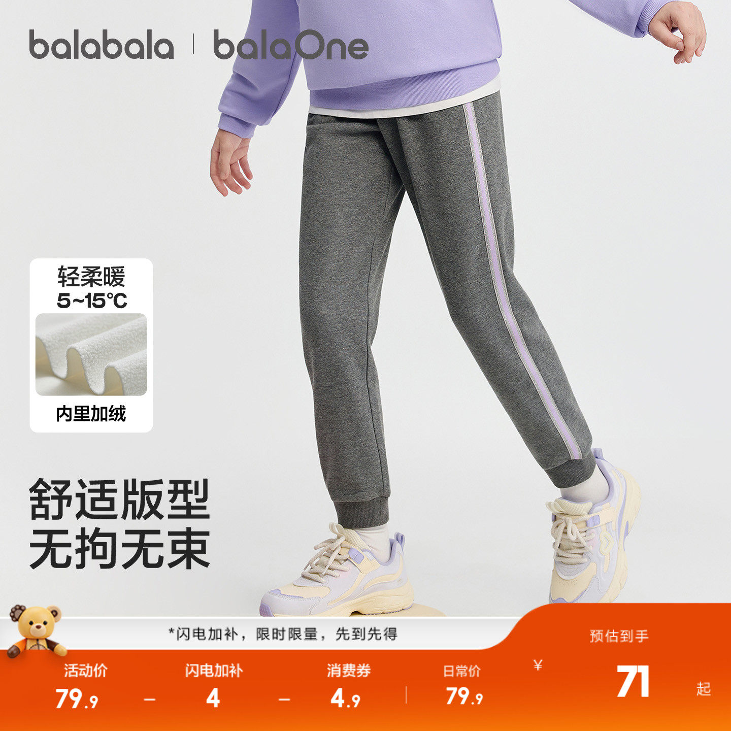 巴拉巴拉童装女童加绒裤子2025秋冬装新款儿童运动长裤加厚保暖潮