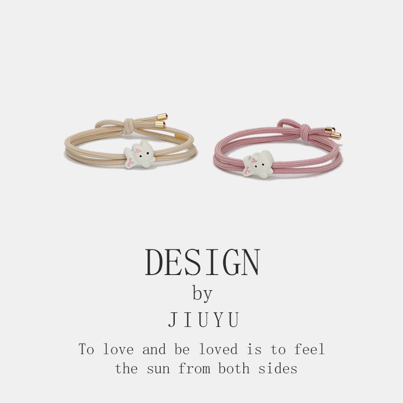 情侣皮筋戴手腕送男朋友手绳不勒同心结简约百搭发绳手链编织头绳