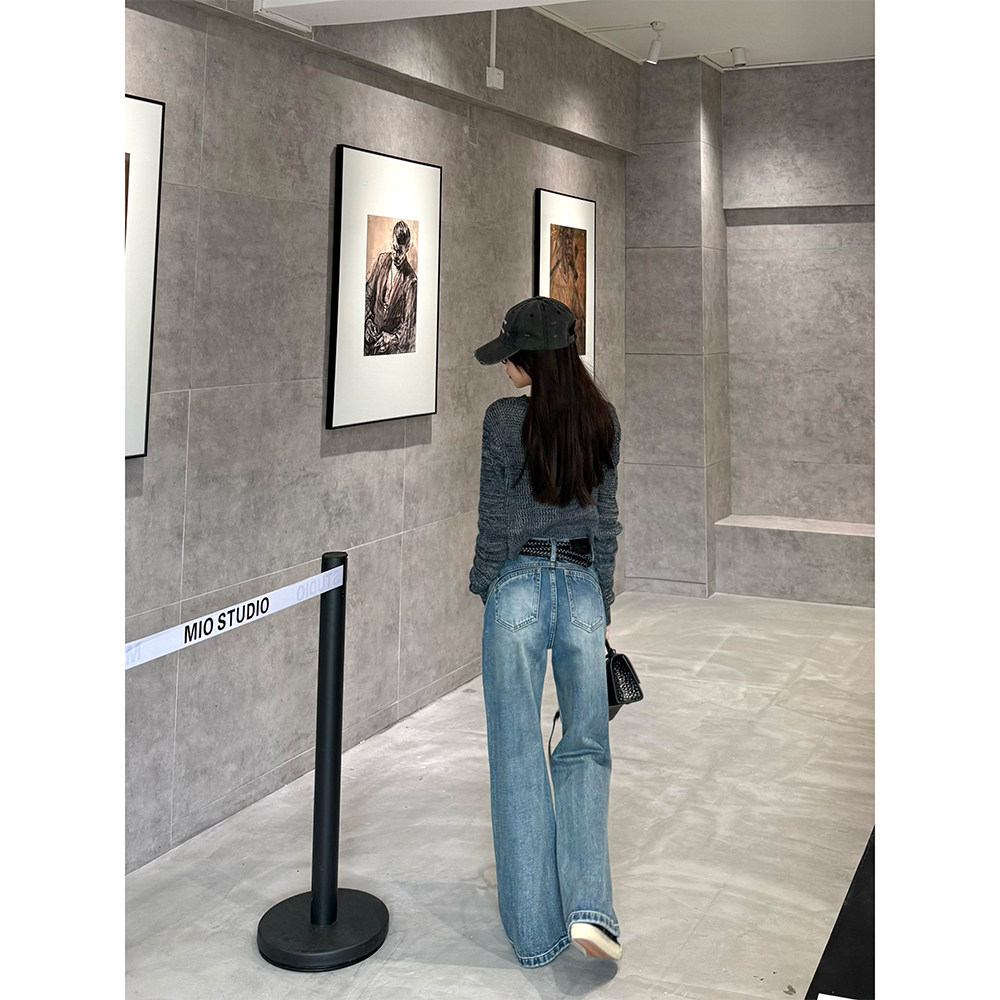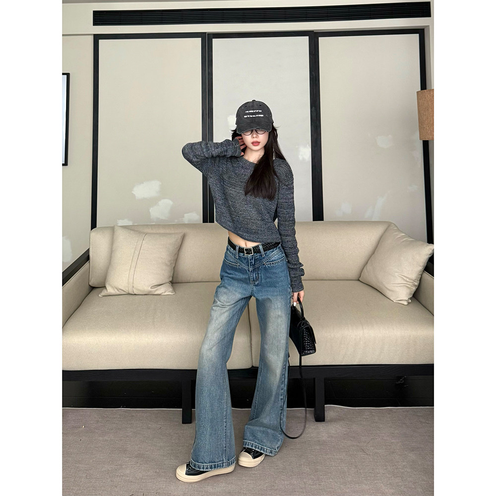 王家有鱼【古早蓝灰】2025秋季新款微喇牛仔裤中高腰不贴腿辣妹女