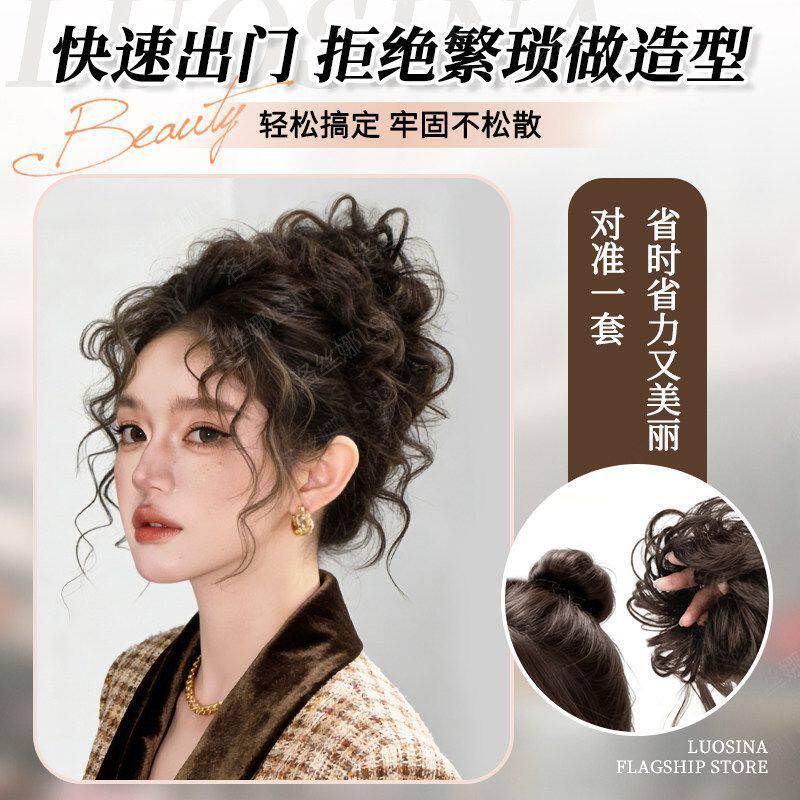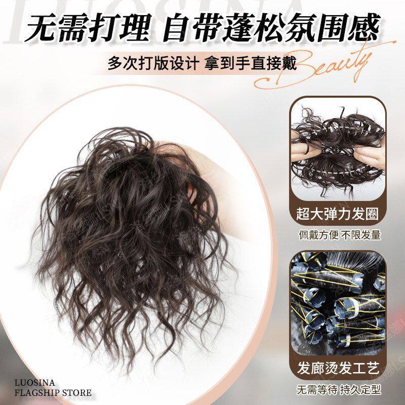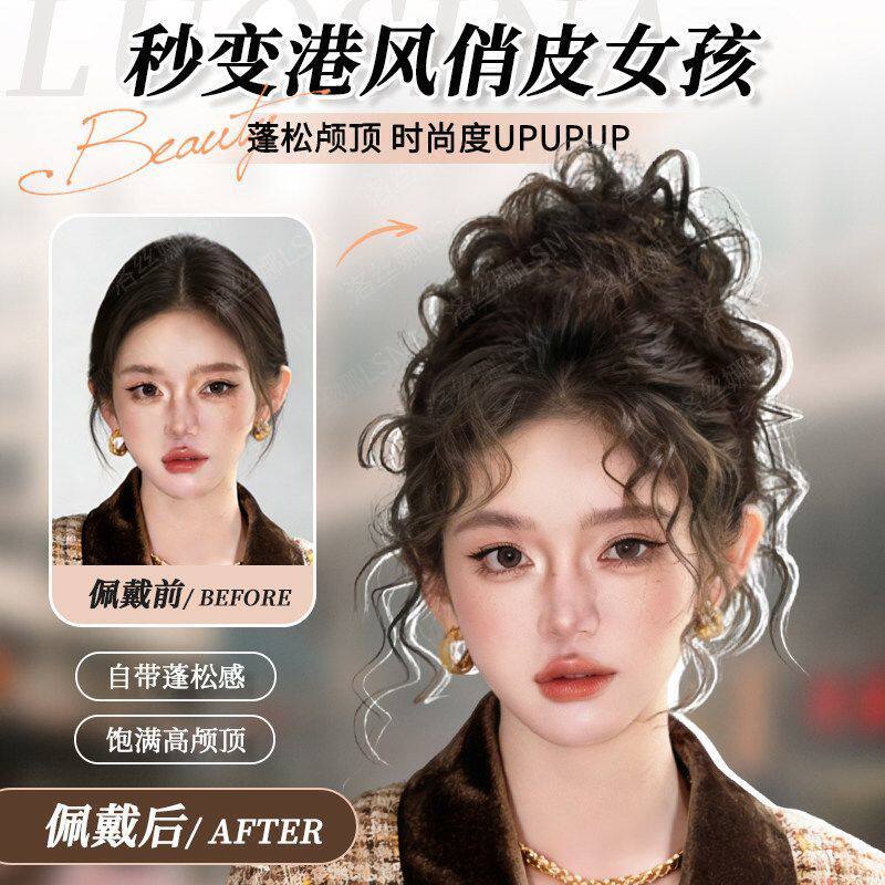 丸子头假发女明星同款羊毛卷花苞头蓬松高颅顶盘发神器古早假发圈