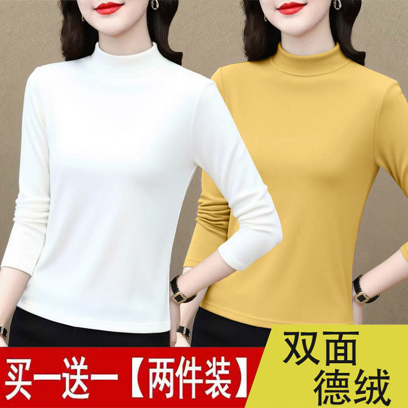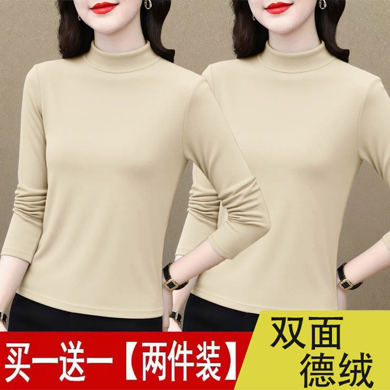 单/两件 半高领德绒打底衫女秋冬内搭可外穿修身高级感保暖上衣女
