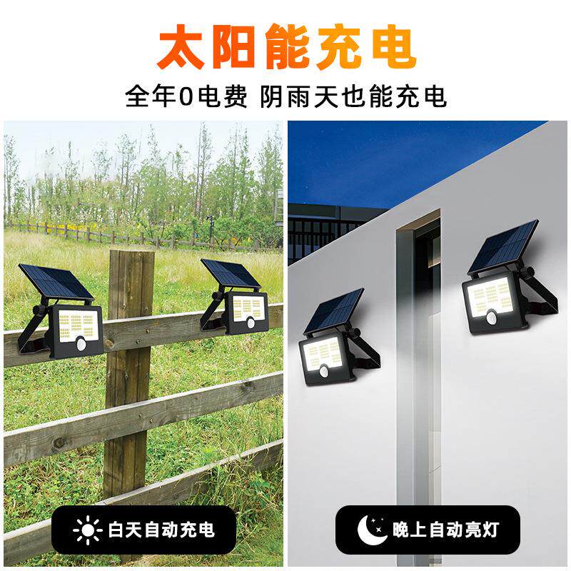 2024太阳能灯投光灯折叠式壁灯人体感应灯庭院照明灯led灯超亮