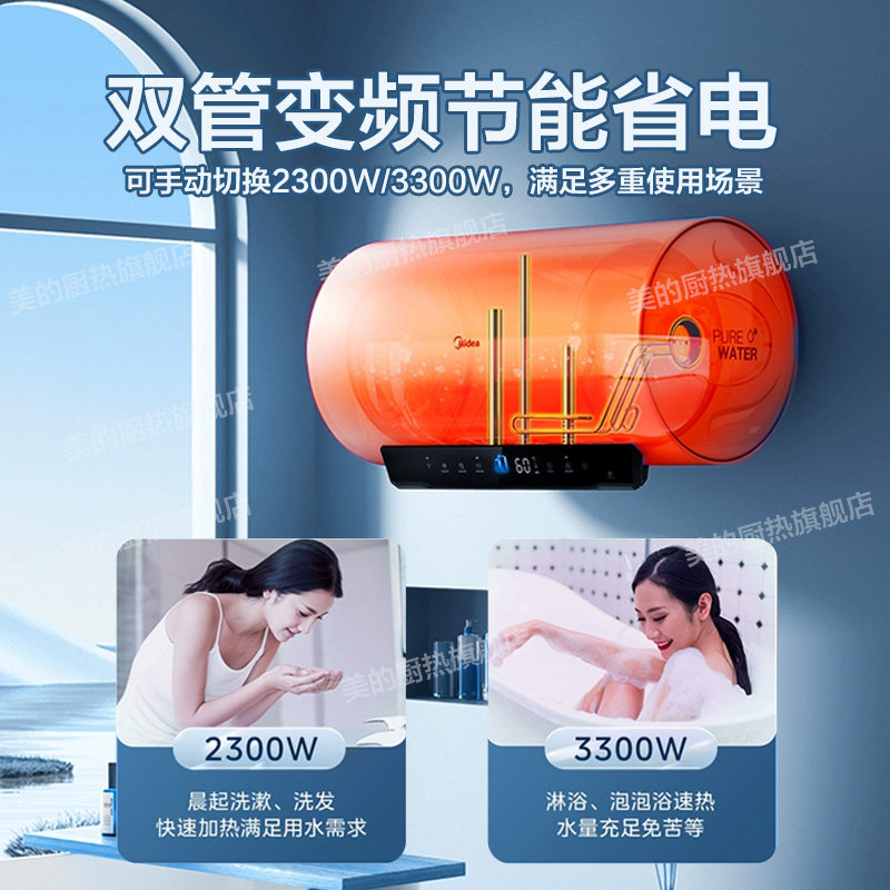 美的变频电热水器出水断电一级能效60升80L洗澡家用速热储水式JA5