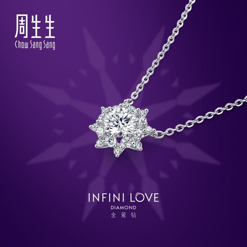 邓为同款周生生全爱钻Pt900铂金钻石心之罗盘项链钻饰93976N