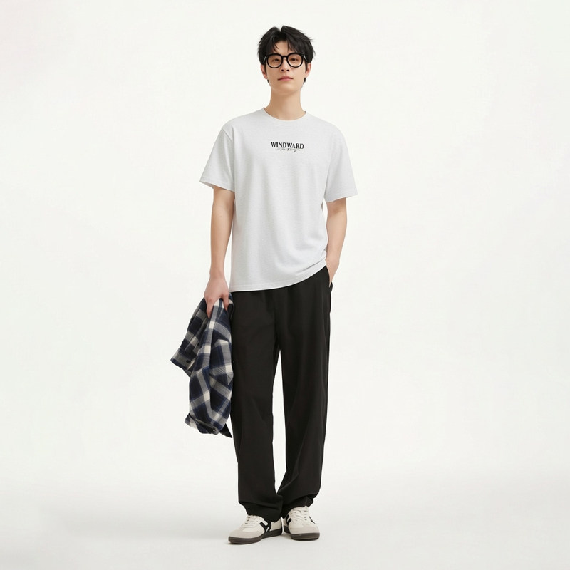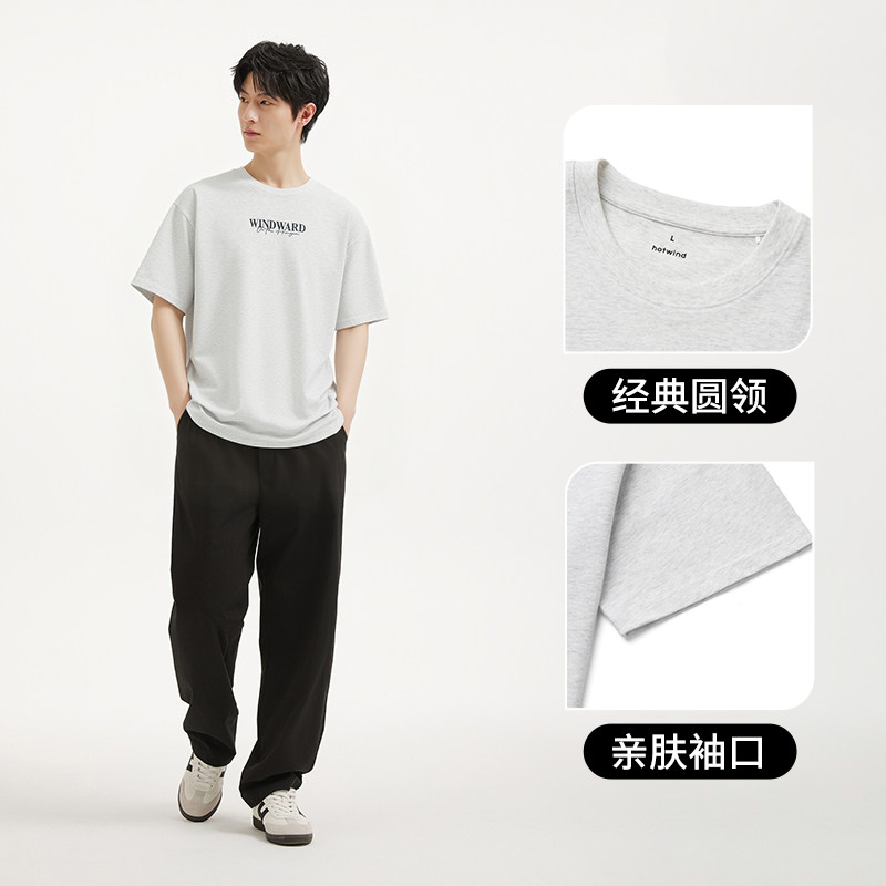 森马短袖T恤男纯棉打底衫修身长袖25夏季新款纯色内搭上衣简约白