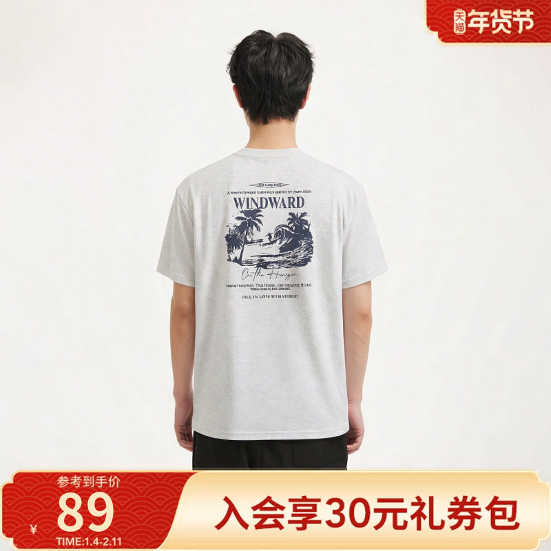 热风2026年夏季新款男士航海风潮流短T恤纯棉舒适亲肤青春流行