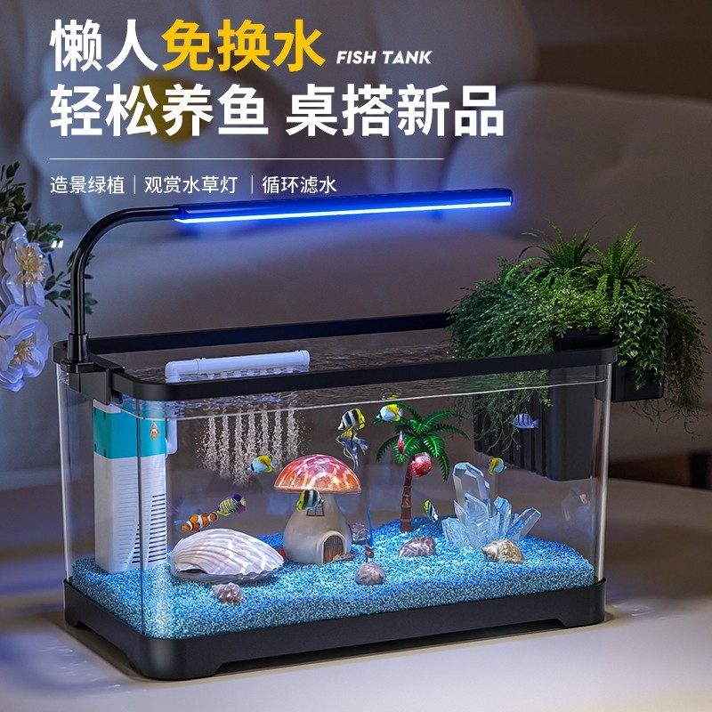 鱼缸2025新款过滤制氧一体机桌面小型金鱼免换水全套造景水族箱