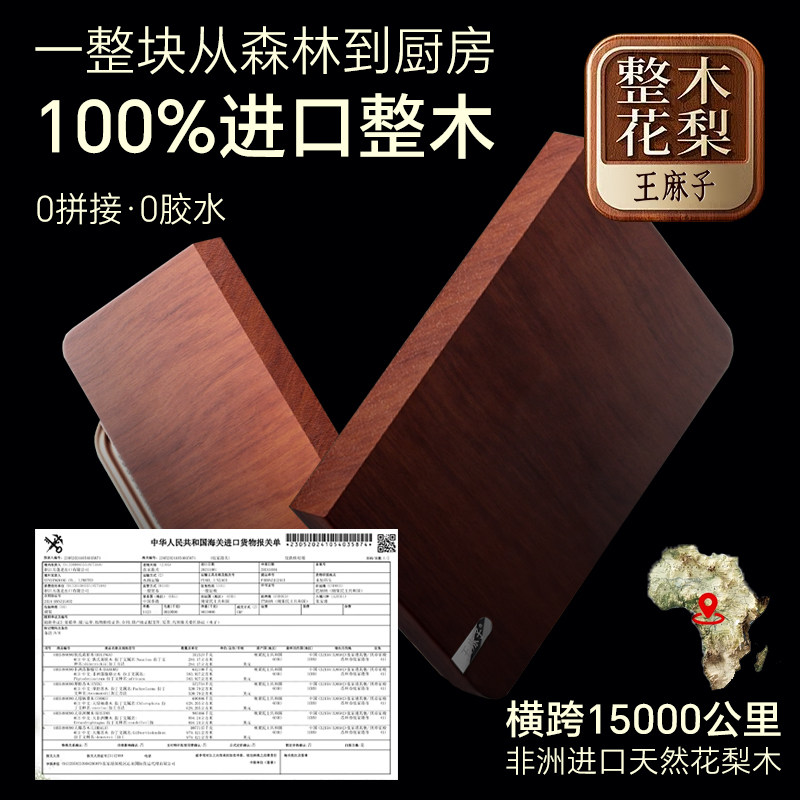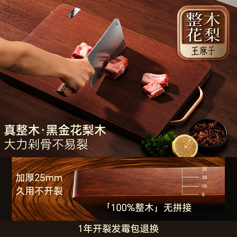 王麻子菜板整木黑金花梨木切菜板案板抗菌防霉家用食品级厨房砧板
