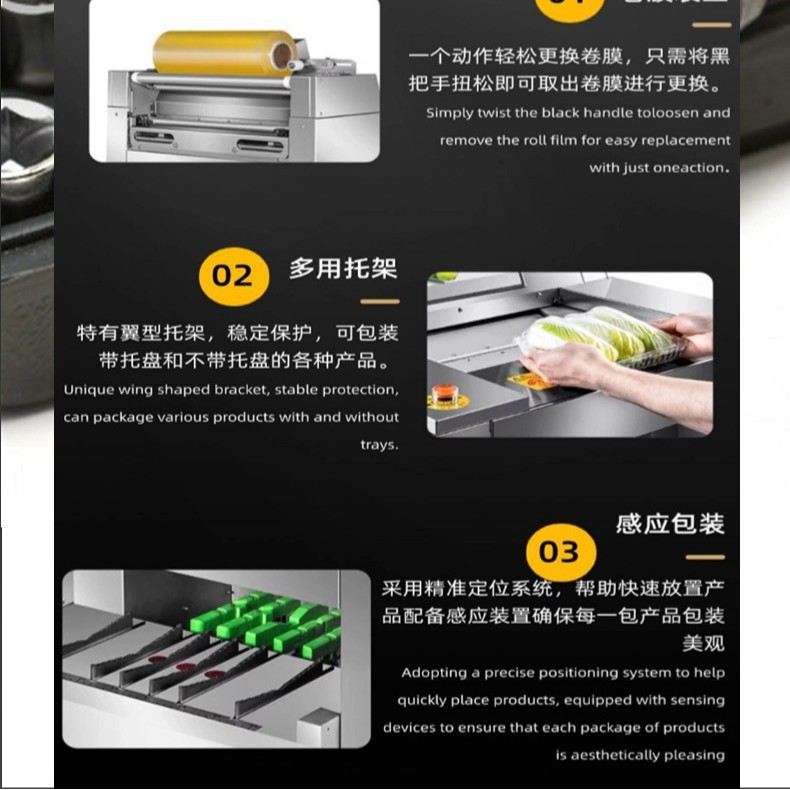 外贸出口厂家直销果蔬肉类保鲜膜包装机商超打包机全自动商用生鲜