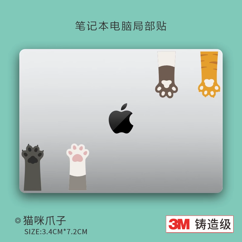 艺贴进口铸造级带导气槽 猫奴猫爪 笔记本平板电脑外壳个性装饰遮瑕美容贴纸贴画遮丑神器防水耐磨撕下不留胶