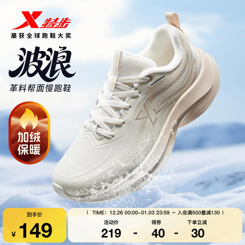 特步波浪棉鞋丨跑步鞋女冬季新款运动鞋皮面加绒保暖减震二棉鞋子