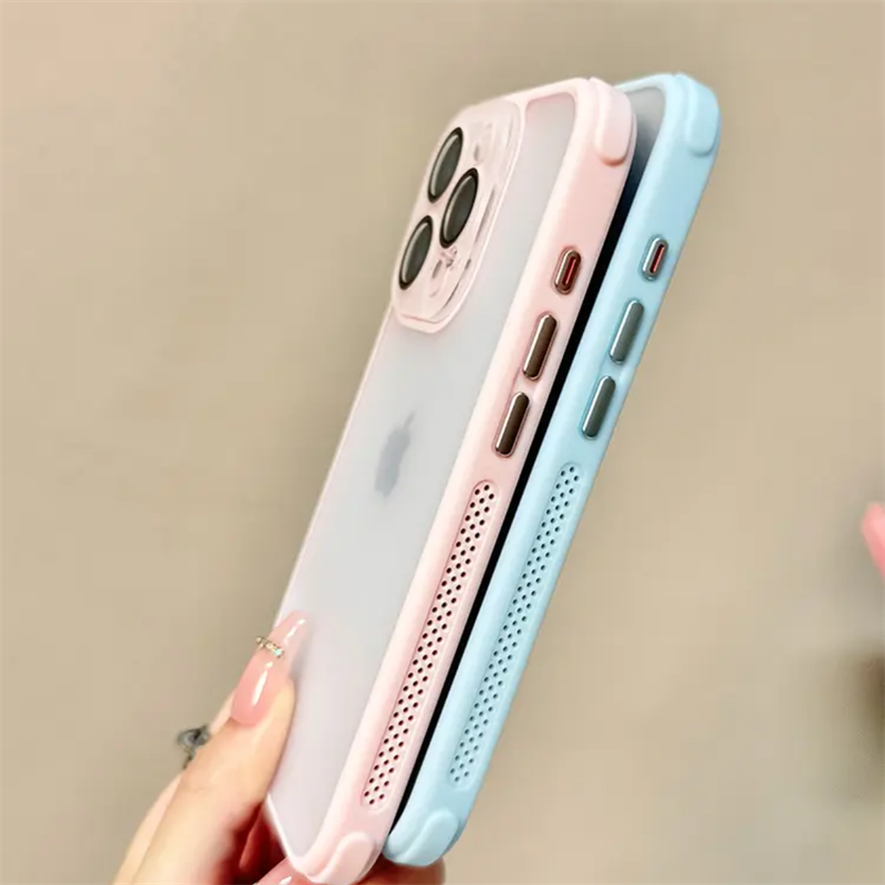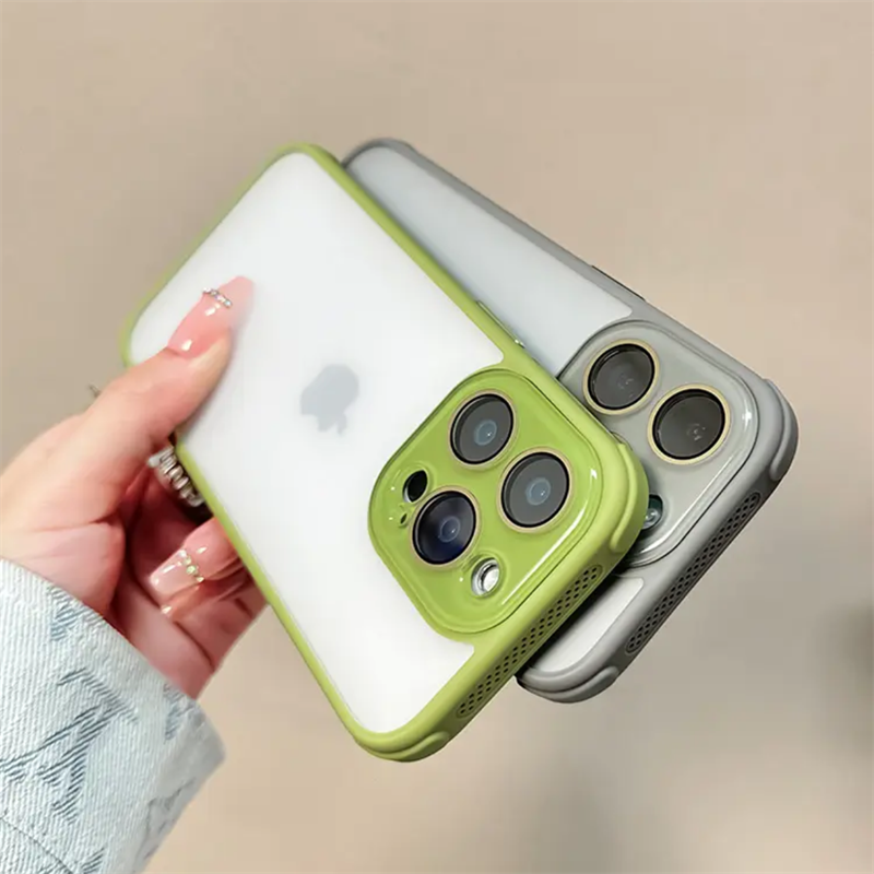 适用苹果16手机壳散热透气iPhone13proma磨砂亚克力新款14Pro简约超薄15plus男女12镜头膜全包防摔保护套磁吸
