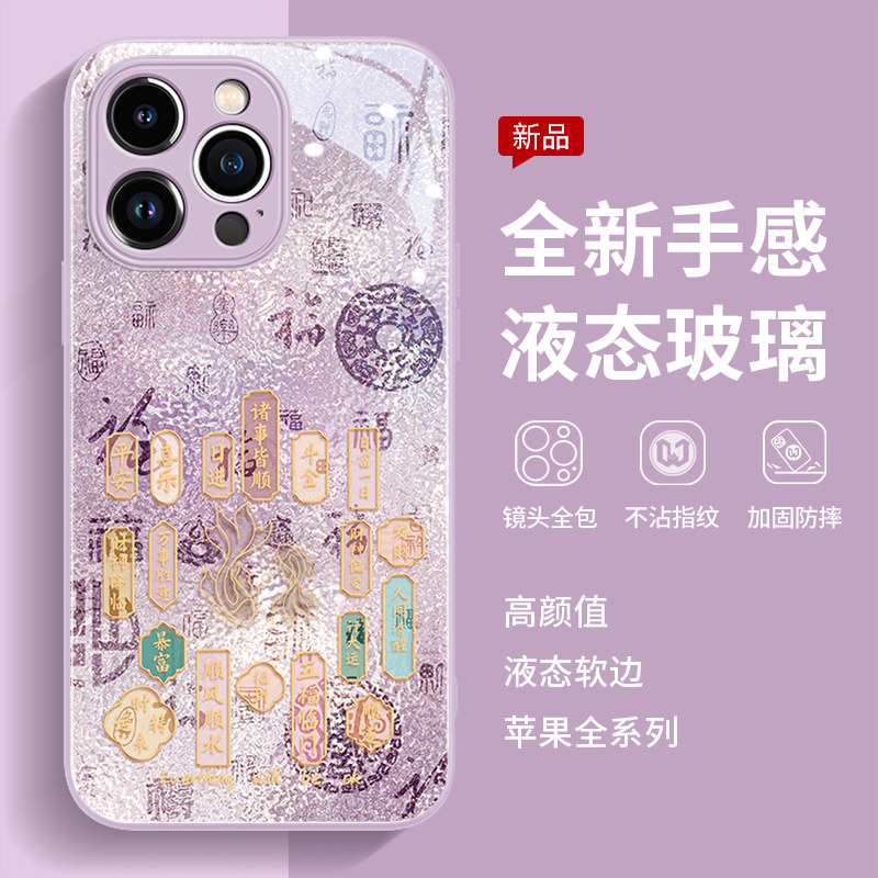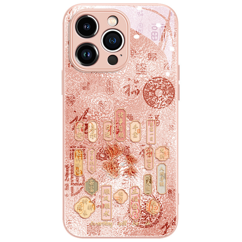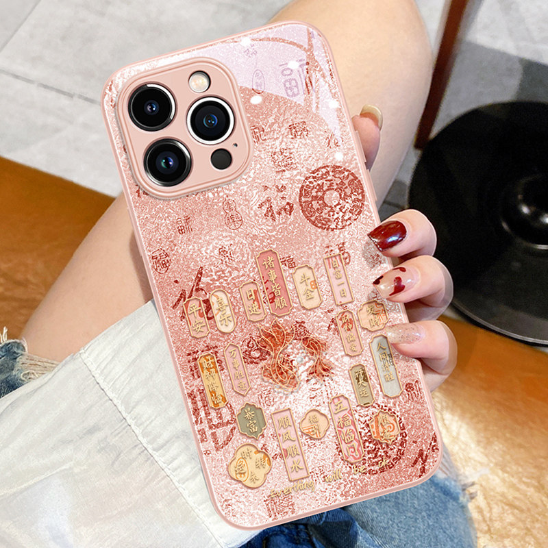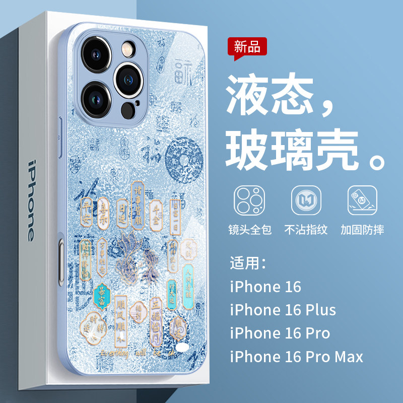 百福锦鲤适用苹果16promax手机壳新款17pro带挂绳iPhone15防摔14pro中国风13时尚12plus个性11女款15玻璃外壳