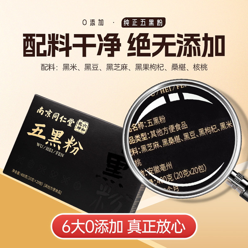 南京同仁堂五黑粉黑芝麻黑豆非养发生发黑发核桃黑枸杞桑葚纯五黑