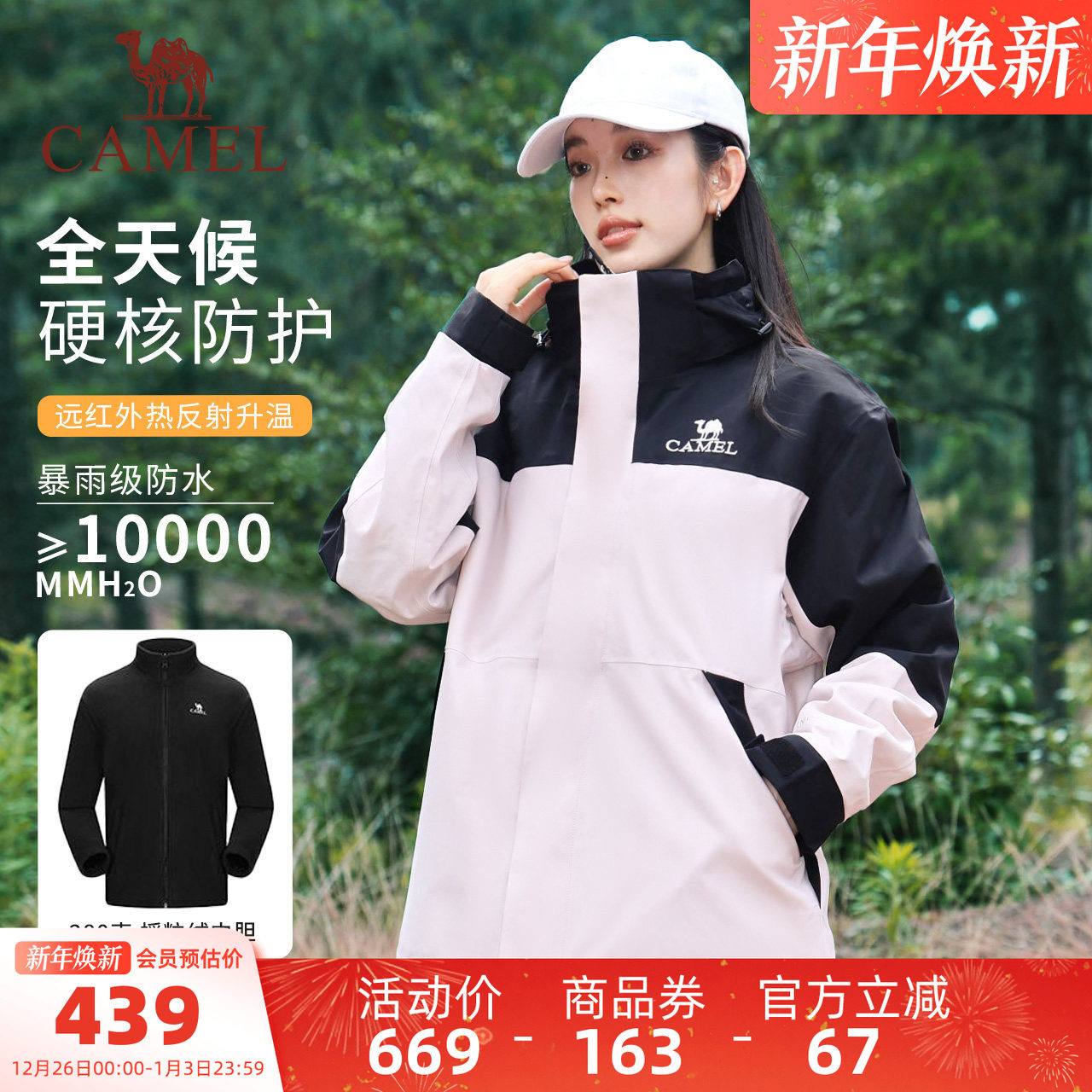 骆驼女装抓绒冲锋衣三合一外套可拆卸春夏新款防风防水旅行登山服