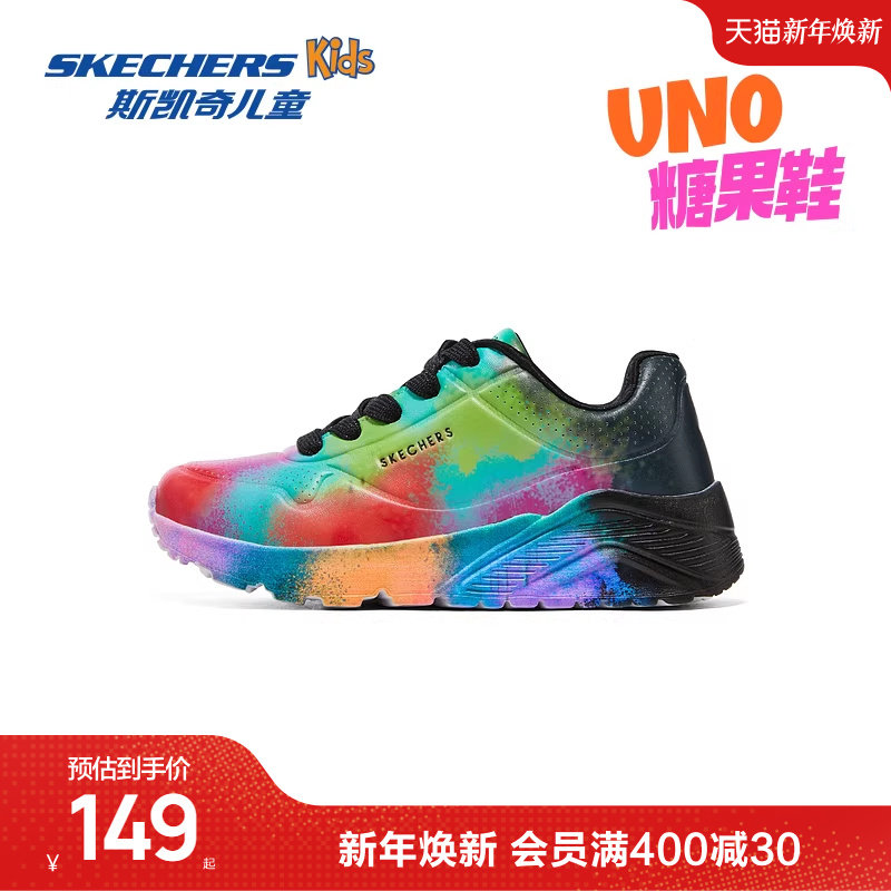 Skechers斯凯奇UNO系列糖果鞋女大童休闲板鞋低帮彩色儿童运动鞋