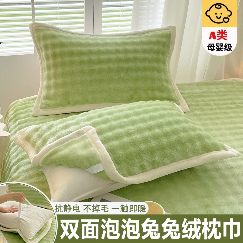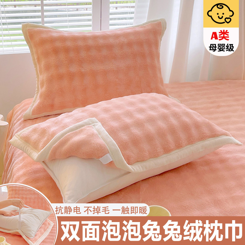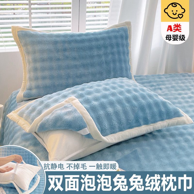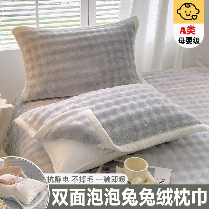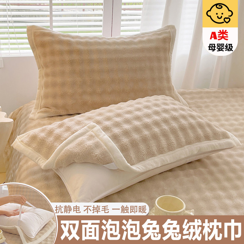 秋冬泡泡绒枕巾一对装加厚绑带款防滑可机洗防头油保暖枕头巾单只